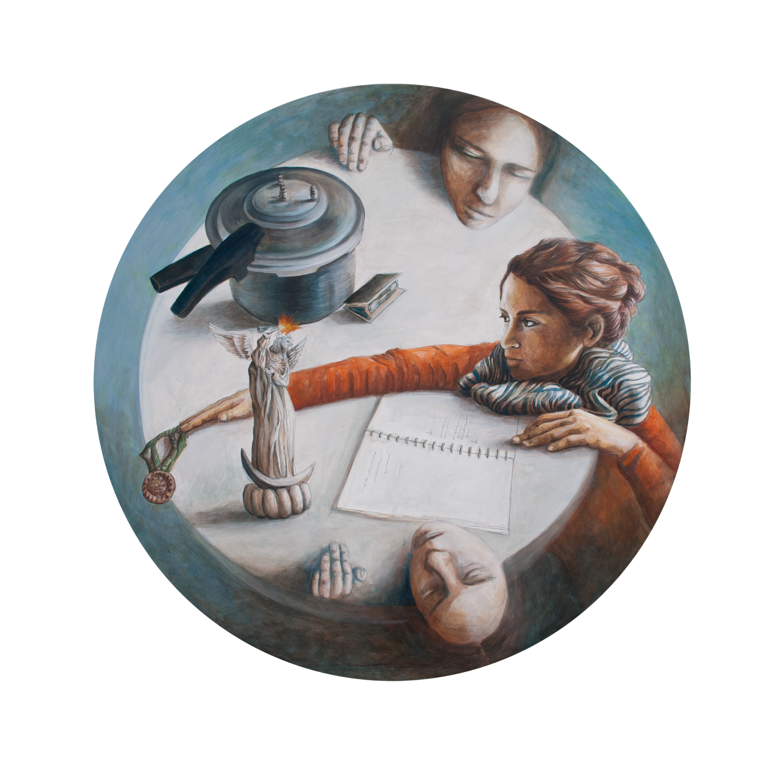 | Paty Cordura/ Locura Temple antiguo sobre madera 120 cm. de diámetro 2016 |
